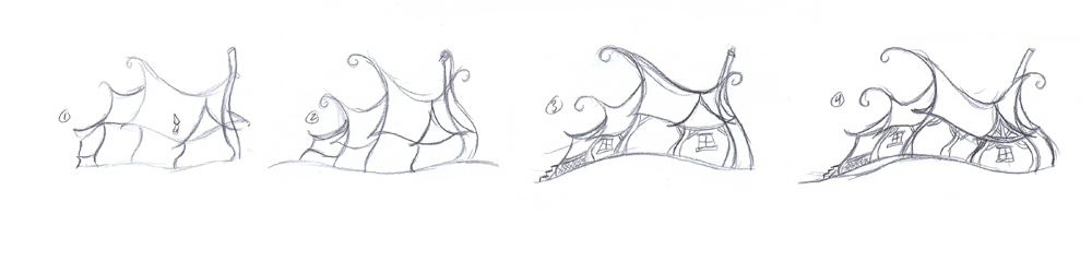 Trying to incorporate the swirls on the ends of the letters into the tips of the roof.