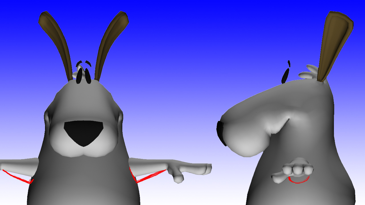 3D modelling with the thick outline around the character's body shape and some finer lines for the interior details.
