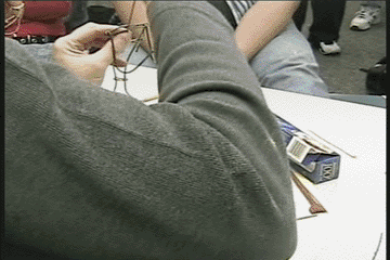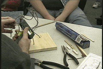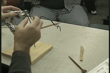 Next, you need to start bulking up the volume of the character. Tear off a strip of aluminum foil about 8" or so long. Lightly crumple it up inot a tube and add it to the wire frame.