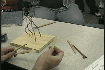 Rotate the wire frame and look at it from every possible angle. When the sculpture is completed, people will be looking at it from every angle, so it has to look good. You can still make minor adjustments after you have the primary layer of Sculpy on but once you start smoothing and adding details, you should have the pose exactly as you want it to end up. |